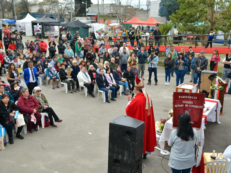 Cientos de feligreses estuvieron congregados este domingo en la plaza frente a la capilla delimitada por las calles Beruti, Alvarado, Casares y Tejedor, en Villa del Plata, durante uno de los festejos religiosos más convocantes con base en Santiago del Estero.