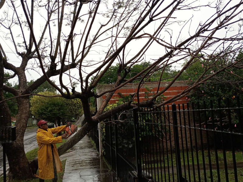 Personal vinculado a la Secretaría de Obras, Servicios Públicos, Ambiente y Planificación Urbana junto a agentes de Guardia Comunal más Defensa Civil permanecían con sus itinerarios según las eventualidades, emergencias o demandas de la ciudadanía.