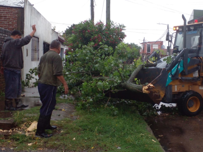 Luego del fenómeno meteorológico de gran intensidad registrado en el distrito durante la madrugada, cuadrillas municipales desplegaron dispositivos multidisciplinarios para efectuar un relevamiento e intervenir en las zonas más afectadas.