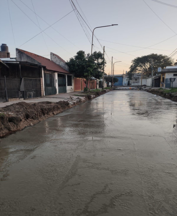 Por otra parte, la Comuna avanzó con fondos propios en el llenado con hormigón de la calle Gral. Hornos para la reconstrucción de la calzada existente.