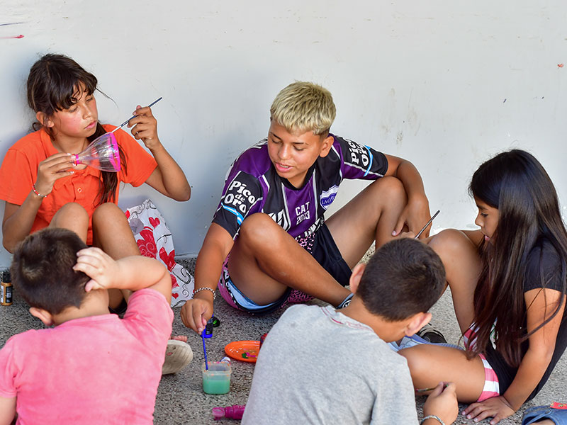 Una de las protagonistas, Ailín, comparte: “Jugamos al vóley, tomamos la merienda, pintamos distintas cosas como una bandera”. A su lado está Lourdes, de 9 años, quien celebra la posibilidad de “hacer amigos, patear la pelota, practicar tejo y armar un balero con materiales reciclados”.