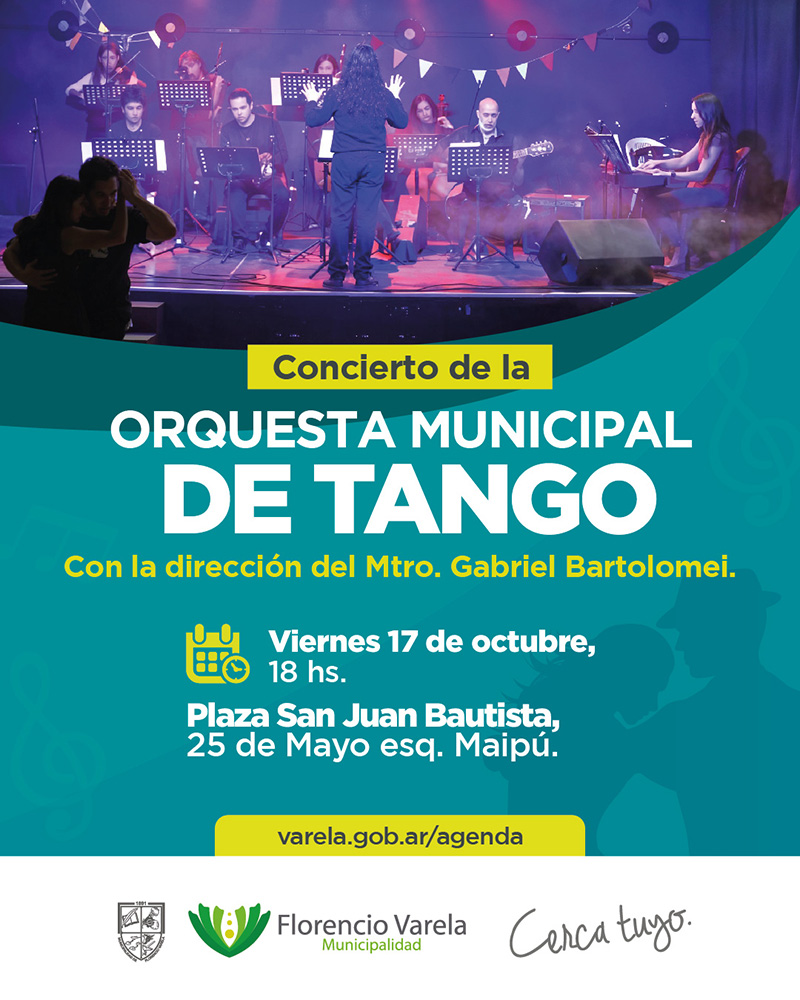 La Orquesta Municipal de Tango prepara un concierto con entrada libre y sin costo el viernes 17 de octubre a las 18 hs. en la plaza San Juan Bautista -25 de Mayo esquina Maipú-.