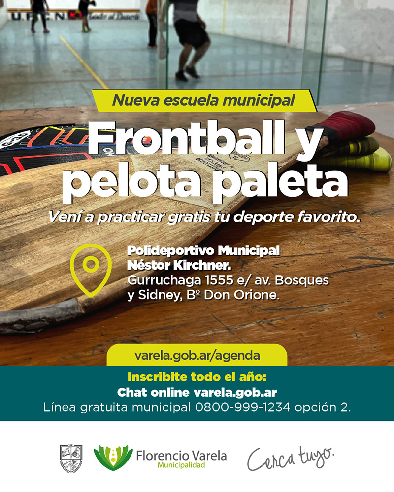 La Comuna extiende su oferta recreativa con clases de pelota paleta y frontball en el Polideportivo Municipal "Néstor Kirchner" -calle Francisco Gurruchaga esquina Sidney-.