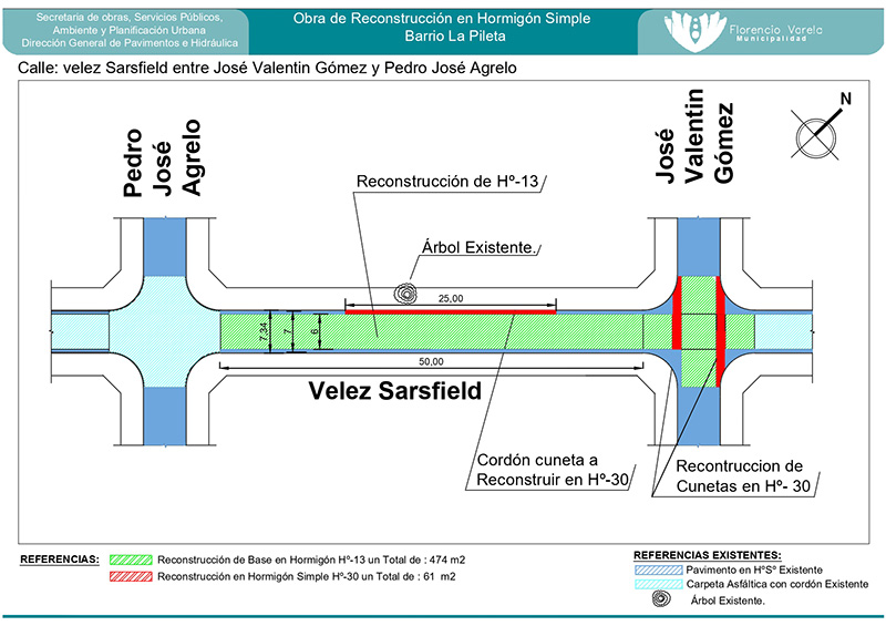 Los trabajos prevén la reconstrucción de 474 m2 de calzada y base de carpeta asfáltica, sumado a 61 m2 de cunetas en hormigón simple.