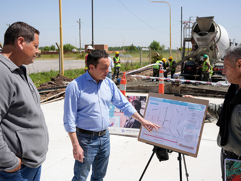 El intendente -Andrés Watson- constató el progreso de la intervención vial más la extensión de la red hidráulica ejecutada en articulación con el gobierno provincial en la calle 1110, entre Diagonal Los Quilmes y Los Diaguitas, La Carolina 5.