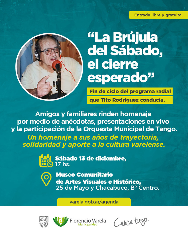 La radio comunal rememorará el ciclo “La Brújula del Sábado” el 13 de diciembre, desde las 17 hs., sobre la calle 25 de Mayo esquina Chacabuco.