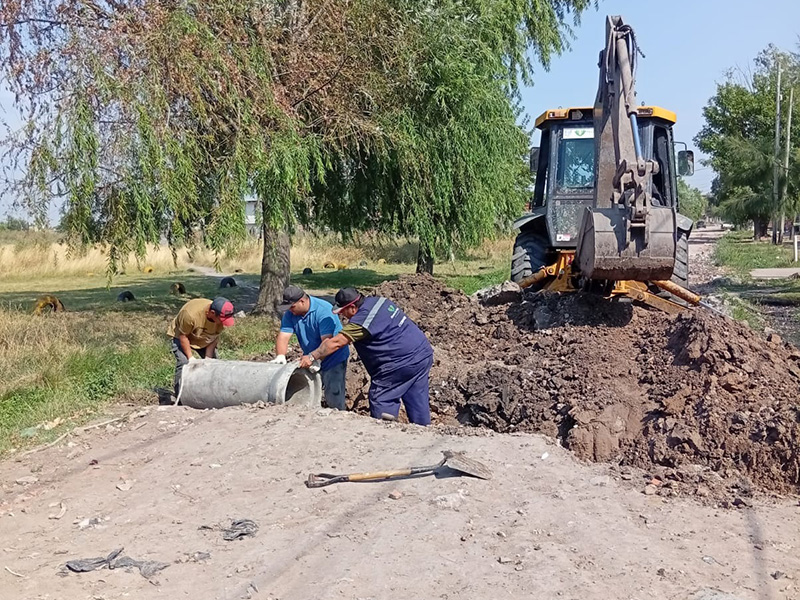 Además, los equipos municipales continuaron con trabajos de colocación de cañerías en Villa Argentina y Bosques Norte.