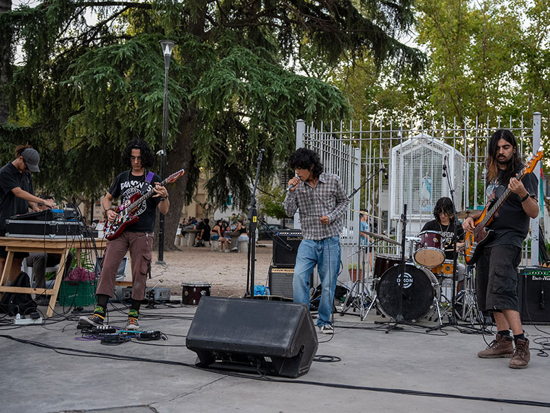 Con una energía imponente, dos conjuntos pertenecientes al programa “Escuela Bandas de Rock ‘Willy Quiroga’” transformaron la plaza San Juan Bautista en su escenario para presentar un repertorio de canciones que cautivó a las y los espectadores.