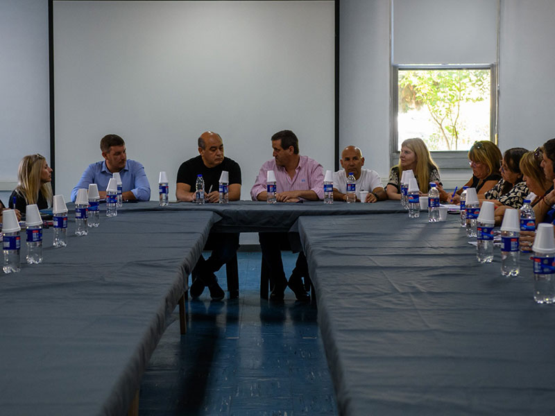 Integrantes del gabinete local, representantes del ámbito pedagógico y miembros de la Unión Educativa de Gestión Distrital protagonizaron un encuentro para abordar el reordenamiento en la prestación de líneas de transporte público comunales, así como el traspaso del Servicio Alimentario Escolar (S.A.E) a la órbita municipal antes del comienzo del ciclo lectivo, durante el mediodía del viernes en el predio del ex establecimiento AGFA -La Pileta-.
