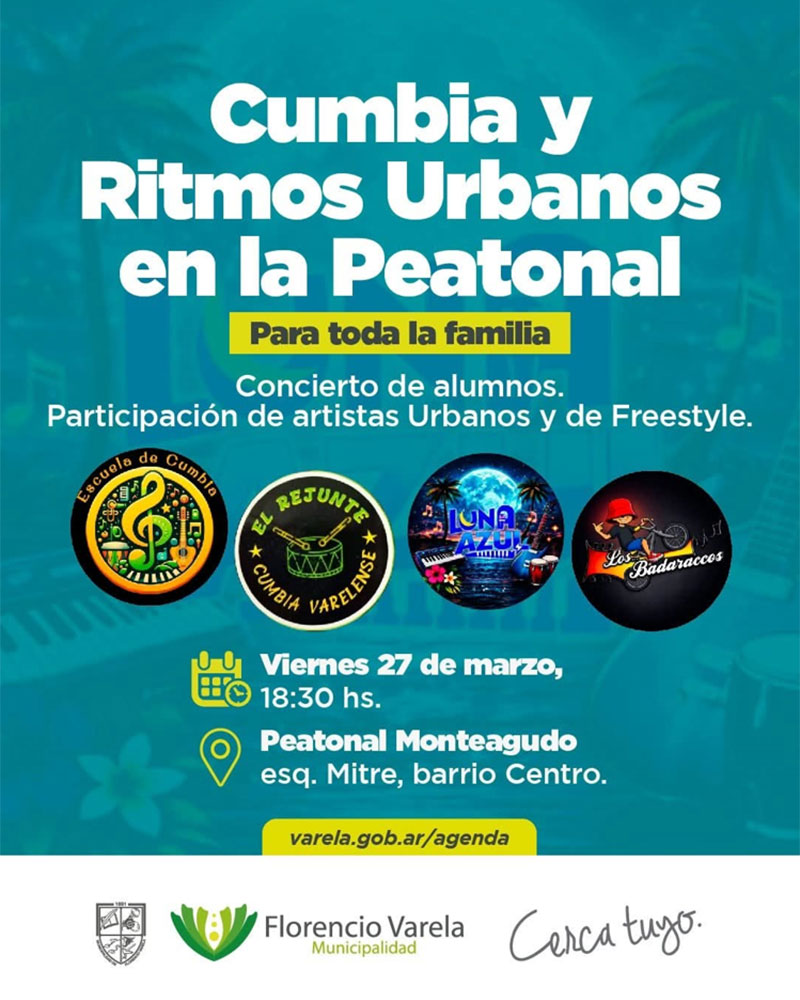 El verano llega a su fin, pero no las ganas de disfrutar al aire libre; por eso, el otoño trae una fecha musical imperdible: un concierto a cargo de integrantes de la Escuela Municipal de Cumbia en Peatonal Monteagudo -esquina Mitre- el viernes 27 de marzo a partir de las 18.30 hs.
