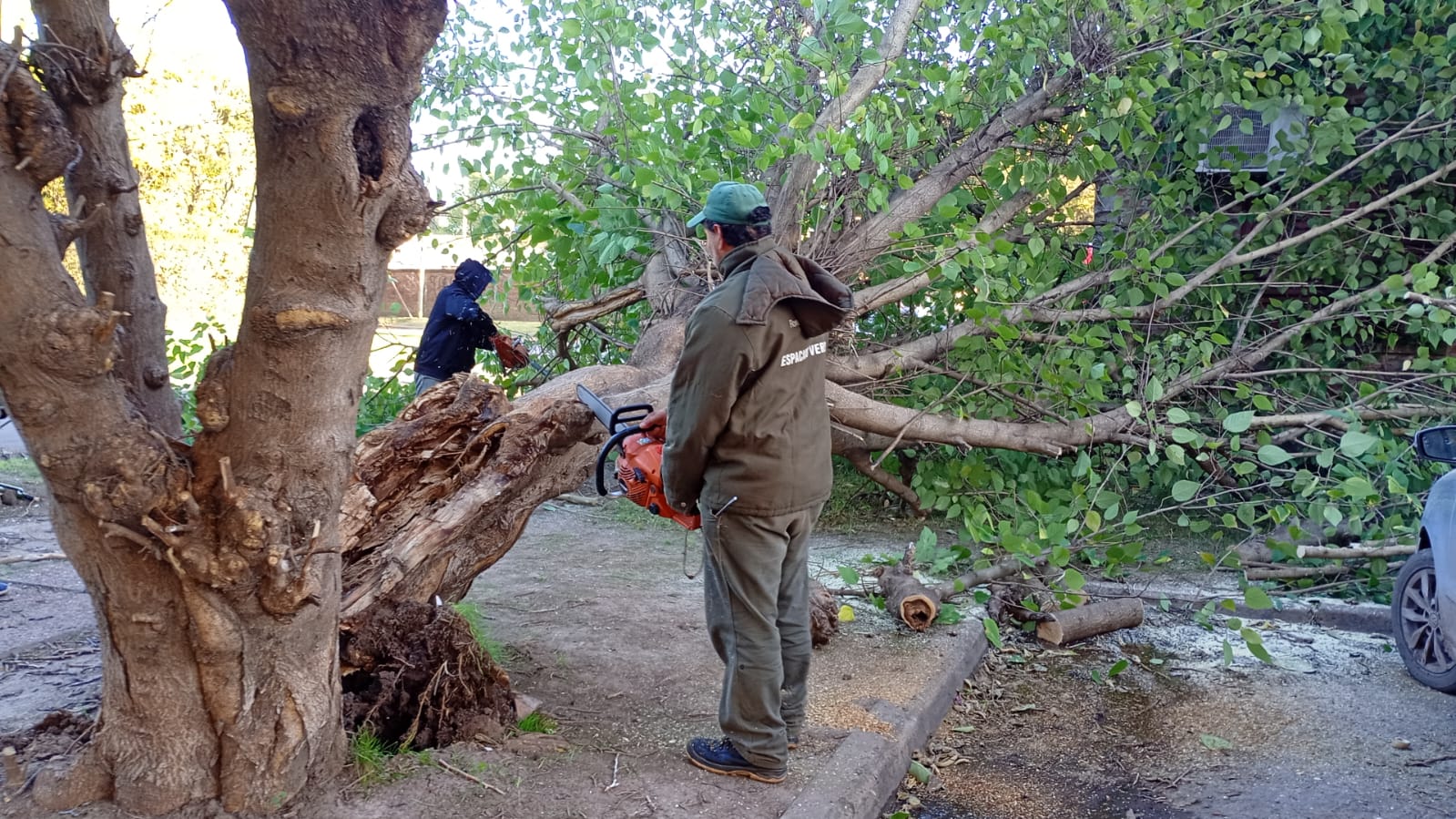 Por otra parte, los equipos trabajaron sobre árboles y ramas dañadas en Villa Vatteone e Ingeniero Allan tras los intensos vientos registrados en la región.