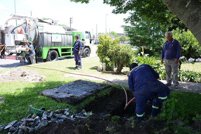 Por otro lado, se continúa con la limpieza de conductos de desagüe en Don José, en La Cautiva (entre El Tordillo y La Rastra); en San Eduardo, sobre 12 (entre Av. San Martín y Sargento Gauna); y en el barrio Centro, en la intersección de las calles Parrillo y Aristóbulo del Valle.