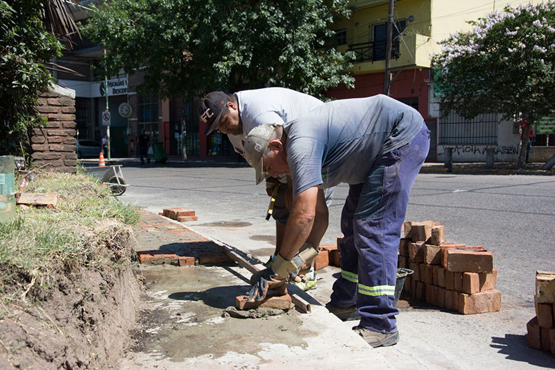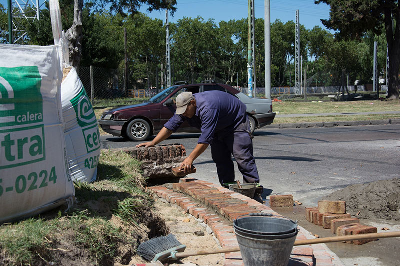 Barrio Centro. Rotonda de Pringles y Presidente Perón. Con el objetivo de favorecer al tránsito vehicular y embellecer el espacio público, se llevan adelante trabajos de reconstrucción de paredes.