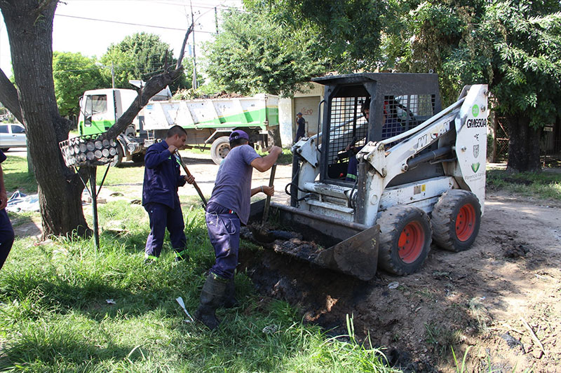Las intersecciones trabajadas mediante la colocación de caños y saneamiento hidráulico fueron las calles 1310 y 1327, en Las Alicias; Olivera y Moranchel, en La Esmeralda; y en el barrio Luján, sobre Los Olivos (entre El Canario y Tinkunaco). También continúa la limpieza del arroyo Jiménez, en el tramo que une Martín García y El Salto en Villa Angélica.