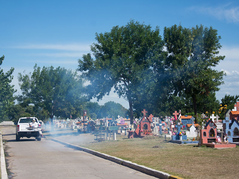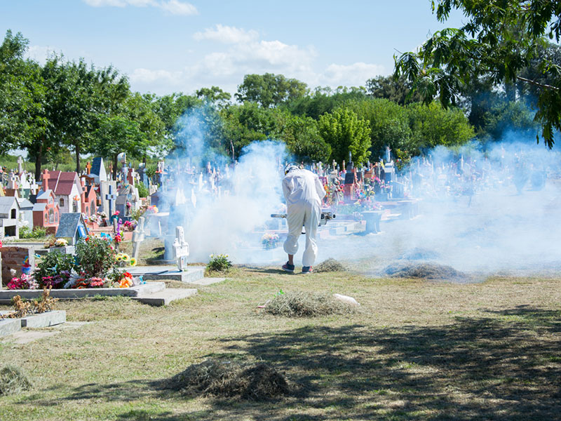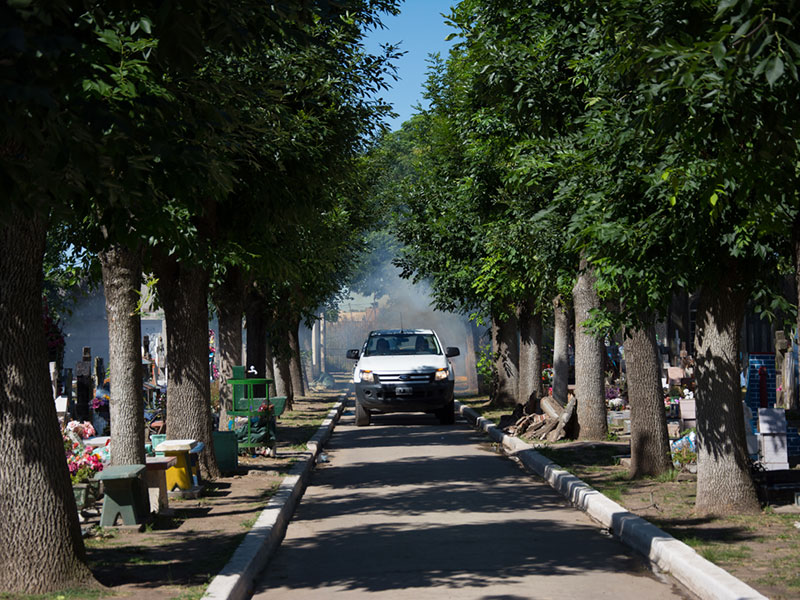 La desinfección en el cementerio comunal consistió en una fumigación de la zona con productos químicos y la remoción de todos los elementos propicios para la gestación de los insectos transmisores del virus.