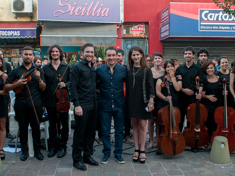 El director de la orquesta, Pablo Piazza, comentó que la idea de presentarse en esta ocasión surgió con la de innovar, “de estar en la vida cotidiana de la gente que pasa y camina por la peatonal, tomándolos por sorpresa. Era una prueba para nosotros. Esperamos que haya más presentaciones durante el año”. A su vez, remarcó que “la existencia de la orquesta en la Argentina es un milagro, pero el esfuerzo que hace el municipio junto a los programas de la orquesta escuela, es un milagro hecho realidad”.