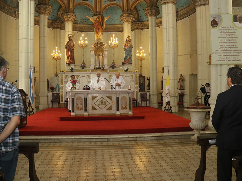 Finalizado esto, los presentes se dirigieron a la emblemática Iglesia San Juan Bautista en la que se llevó a cabo la santa misa, presidida por el padre Enio Cargnello.
