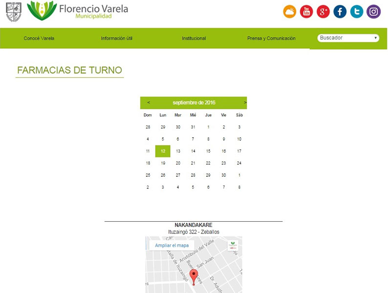 - Farmacias de turno: listado de las farmacias de turno que están de turno durante todo el mes, con un mapa de referencia para que resulte más fácil encontrar su ubicación.