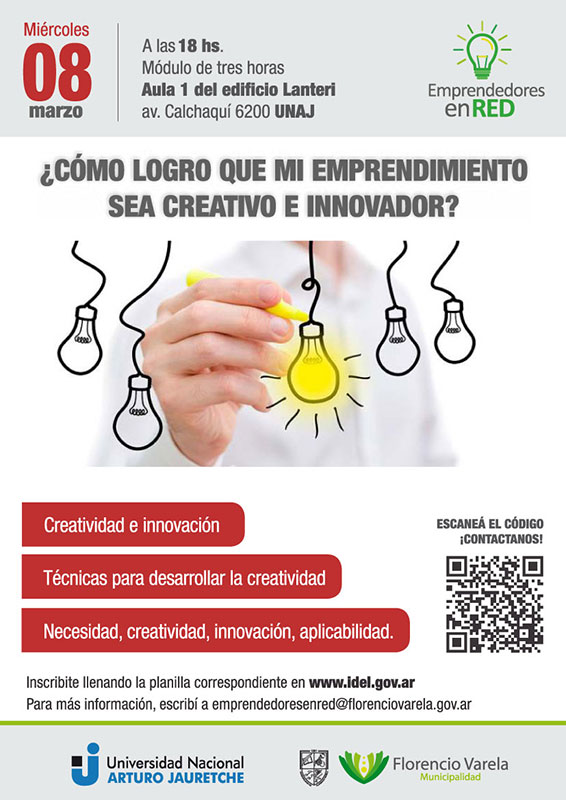 El ciclo de capacitación reanuda su actividad en 2017 con un encuentro destinado a descubrir técnicas para desarrollar un emprendimiento vanguardista. El primer taller del año será el miércoles 8 de marzo a las 18hs en el Aula 1 del Edificio Lanteri perteneciente a la Universidad Nacional Arturo Jauretche, situado en Avenida Calchaquí Nº 6200.