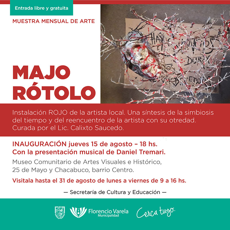 Con entrada libre y gratuita, la Municipalidad de Florencio Varela mediante el Museo Comunitario de Artes Visuales e Histórico y a través de la Secretaría de Cultura y Educación, invita a las tres muestras itinerantes, recientemente inauguradas: Rojo, Las artes plásticas en la moneda argentina y la muestra preseleccionados de GUIARTE.